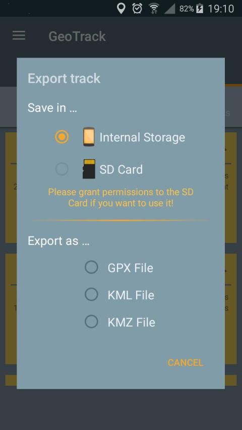. 'Write / Read storage' (internal or SD card) to export the trips.