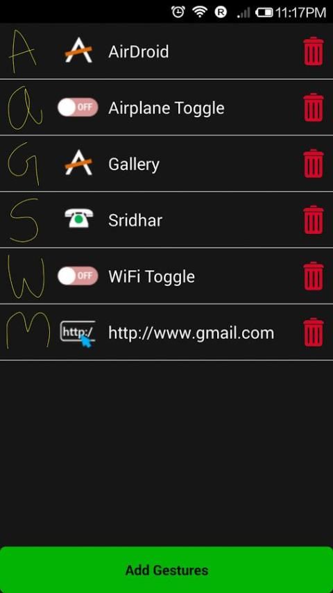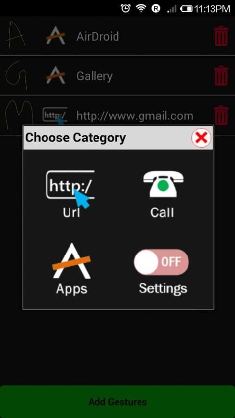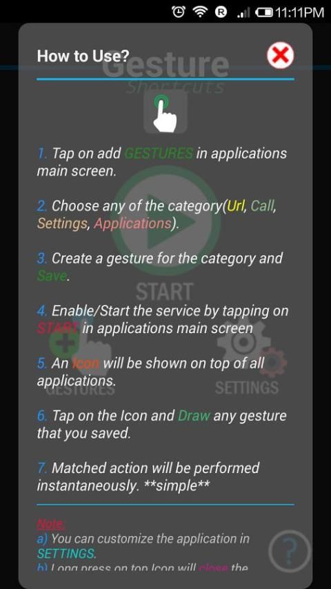 आप किसी भी आवेदन / यूआरएल / सेटिंग्स को खोलने के लिए या एक संपर्क डायल करने के लिए एक इशारे से बचा सकता है।