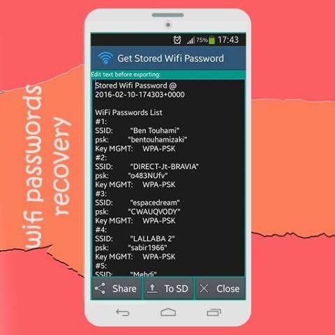 "सहेजा वाईफाई पासवर्ड जाओ" ठीक सभी वायरलेस नेटवर्क सुरक्षा कुंजी / पासवर्ड (WEP / डबल्यु पी ए) अपने डिवाइस में संग्रहित