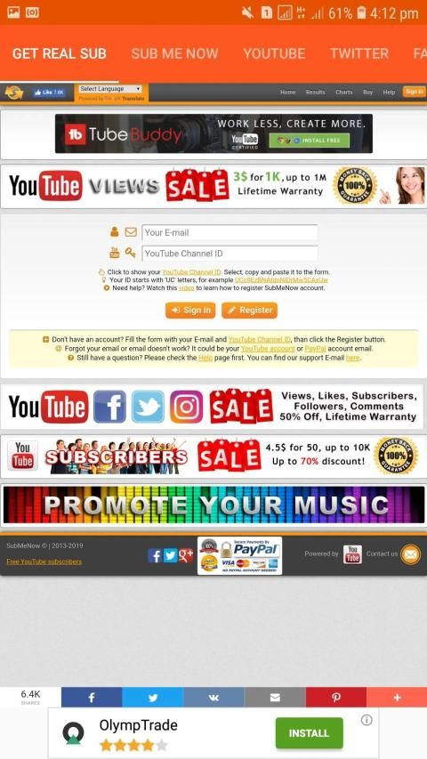 Get up to 15 real and free YouTube subscribers, views and likes every day. Fast and simple to use sub4sub network of YouTube subscribers that actually watch and like your videos. Sign up free and join community of 1,000,000 active members that ready to subscribe your channel right now!