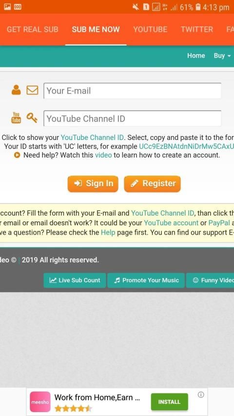 हर दिन 15 वास्तविक और निशुल्क YouTube ग्राहक, दृश्य और पसंद प्राप्त करें। YouTube सब्सक्राइबरों के उप 4sub नेटवर्क का उपयोग करने के लिए तेज़ और सरल जो वास्तव में आपके वीडियो को देखते हैं और पसंद करते हैं। निःशुल्क साइन अप करें और 1,000,000 सक्रिय सदस्यों के समुदाय से जुड़ें जो अभी आपके चैनल की सदस्यता के लिए तैयार हैं!