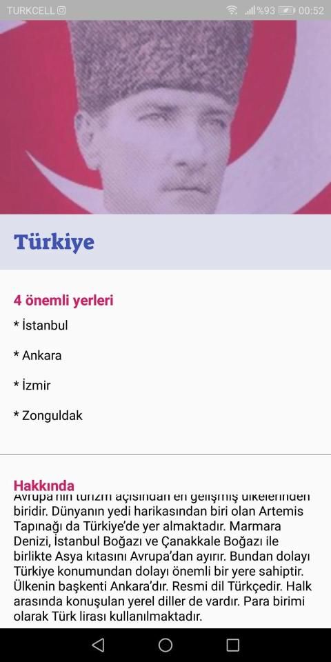 *Hakkında kısmında ülkenin bilgilerini,para birimini ve vize durumunu