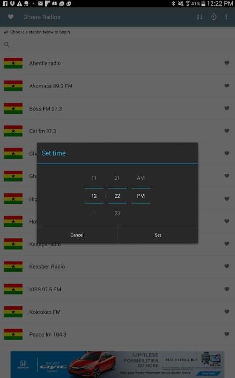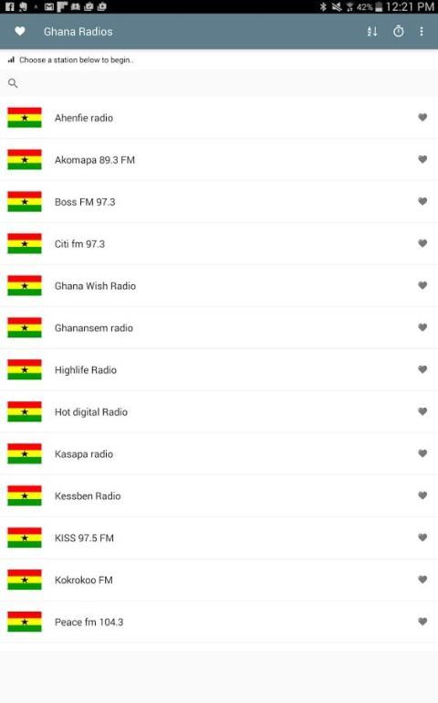 अनुप्रयोग में शामिल लोकप्रिय घाना रेडियो स्टेशनों में से कुछ हैं: