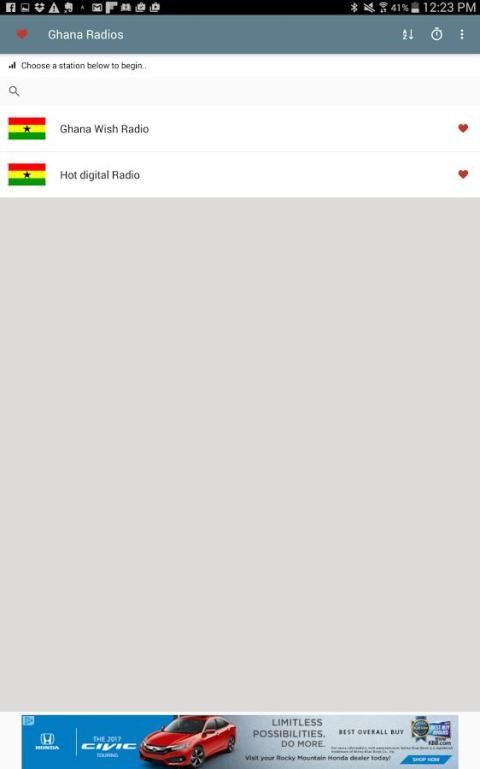 - वर्णमाला क्रम में अपने घाना रेडियो स्टेशनों तरह या जल्दी घाना रेडियो की सूची से खोज करने की क्षमता।
