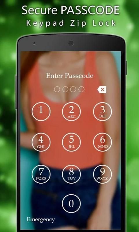 लड़की ब्रा जिपर स्क्रीन लॉक अपने मोबाइल बंद करने के लिए एक आवेदन पत्र अपने सुंदर HD छवियों के साथ एक ज़िप का उपयोग कर रहा है।