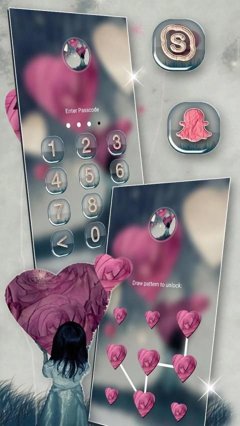 • Lock Your Phone with Girl Heart Launcher Theme
