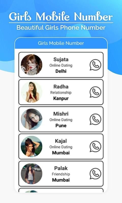Girls Mobile Number app has a special collection of some of personal contact numbers of girls which are from different countries, websites, forums, whatsapp chat groups, and other social networks from India. You can get these numbers free of cost.