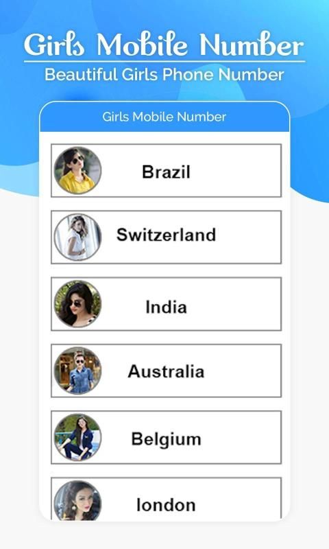 Girls Phone Number Search app will help you easily find any girls numbers which is very difficult nowadays, but this makes it easy and fast. So download our app and chat with different country girls on call or whatsapp which is the best way to start dating online, and it is the main reason to have developed to get any girl's number from your city.