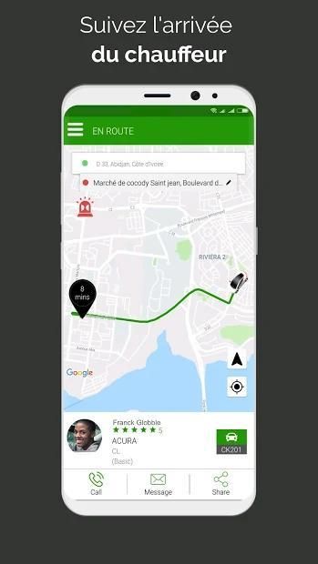 - Vous verrez une photo du fournisseur, les détails de son véhicule, et vous pourrez suivre son arrivée sur la carte et le contacter en cas de besoin.