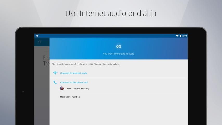 अपने कंप्यूटर से दूर होने का मतलब यह नहीं है कि आप ऑनलाइन घटनाओं पर बाहर याद आती है। मुक्त GoToWebinar मोबाइल एप्लिकेशन आपको न केवल देख सकते हैं और वेबिनार में सुना है, लेकिन साथ ही उन्हें में भाग लेने की सुविधा देता है। कोई फर्क नहीं पड़ता कि तुम कहाँ हो, आप सवाल पूछ सकते हैं, चुनाव और अधिक में भाग लेते हैं।