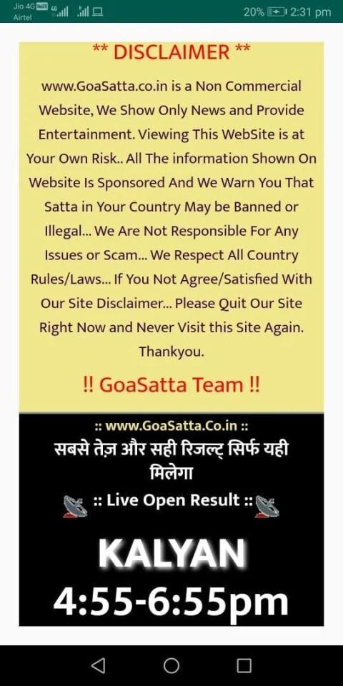 Download this application to check out live result, Daily Leak Jodi, Daily free game, Monthly Chart, Matka Chart, Satta Chart, All Goa Satta Game Chart and many more.