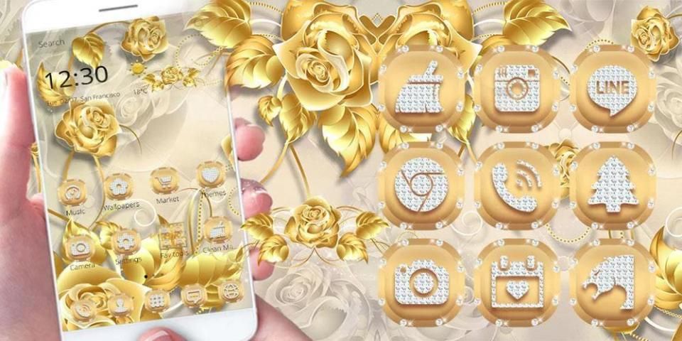 अधिक का पता लगाने ❤ 3 डी सेमी लांचर पाने के लिए और सुनहरा एंड्रॉयड फोन गुलाब