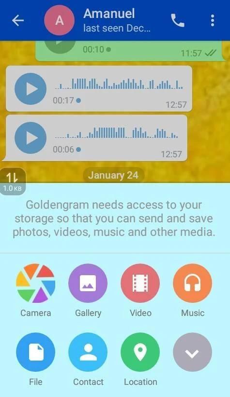 असीमित: आप अपने प्रकार और आकार पर किसी भी सीमा के बिना, मीडिया और फ़ाइलें भेज सकते हैं। आपके संपूर्ण चैट इतिहास को आपके डिवाइस पर कोई डिस्क स्थान की आवश्यकता नहीं होगी, और जब तक आपको आवश्यकता होगी, तब तक गोल्डनग्राम क्लाउड में सुरक्षित रूप से संग्रहीत किया जाएगा।