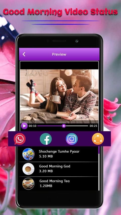 application special design to easily download Goodmorning video clips direct from the available list. Use a lightweight application for free to download video clips. Application has clear UI design to understand that how to download the video clip. Freely install the application and get all the Goodmorning song list click on a song which you want to download or see Instant the preview and share it on social media.