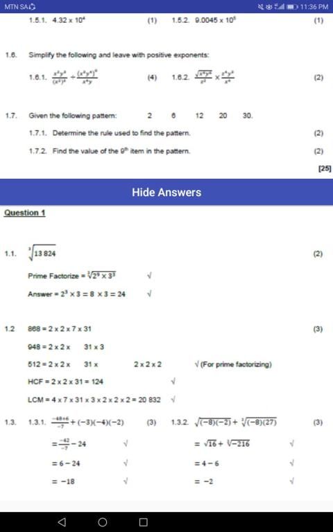 Grade 8 Mathematics Mobile Application content: