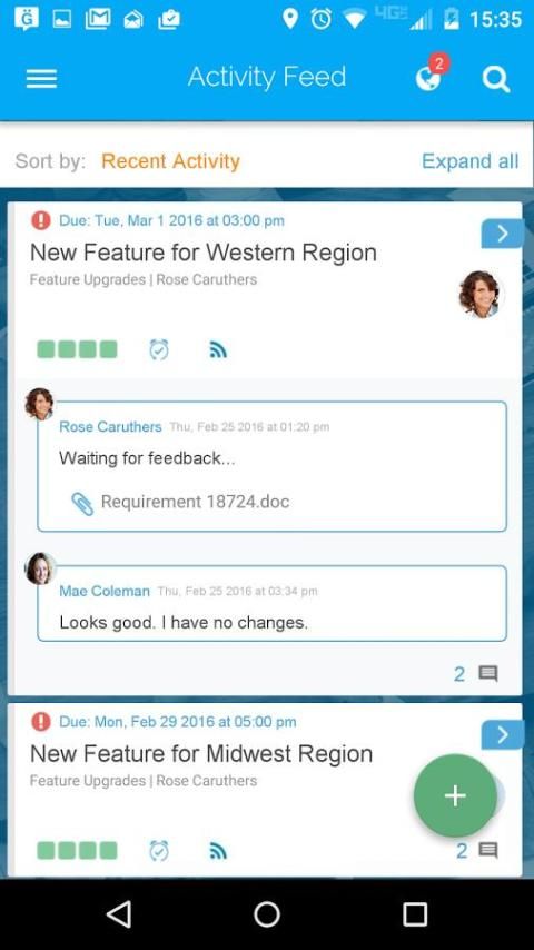 हाथापाई आप सभी विभागों के पार अपने कार्यों पर सभी गतिविधियों (नया कार्य, चर्चा, पूरा कार्य) से पता चलता है। आप वास्तविक समय में गतिविधियों का जवाब कर सकते हैं।