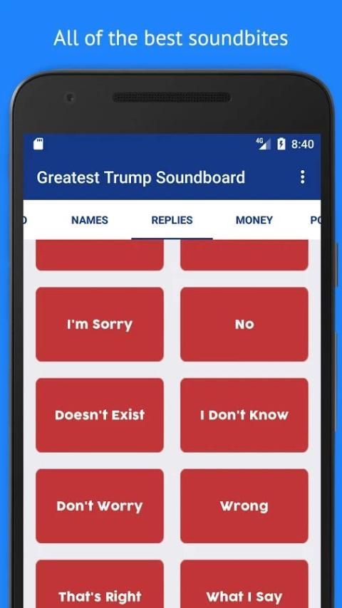 महानतम ट्रम्प ध्वनि सबसे लोकप्रिय (और अलोकप्रिय) बातें उन्होंने कहा है की कई सहित ऑडियो क्लिप के सैकड़ों शामिल हैं। यह प्ले स्टोर पर सबसे बड़ा तुरुप ध्वनि है, हमें विश्वास है!