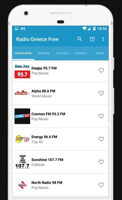 Your favorite radios can be saved in the favorites option, so you can quickly listen to your favorite FM Radio Greece
