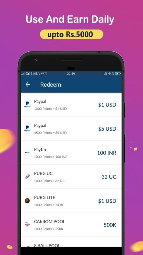 1) Top Earning App: You can earn unlimited Money from Grewards. Users who ranked on top of the list earn more than Rs 50,000 Paytm Cash. Earn your first 100 point as sign up bonus. You can Refer and Earn. Once you earn 1000 points or more, withdraw the amount through Paytm ,paypal,pubg uc,pubg lite, carrom pool,8 Ball pool, ludo king,teen patti octro at any time.
