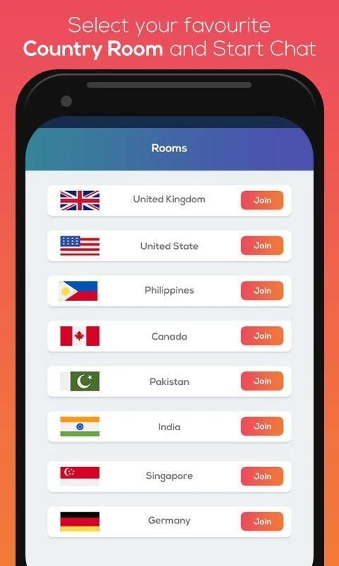 Even you can join any country chat rooms. You can make friends in any country. We are providing the free functionality of the group chat room. You can chat online with friends and any stranger.