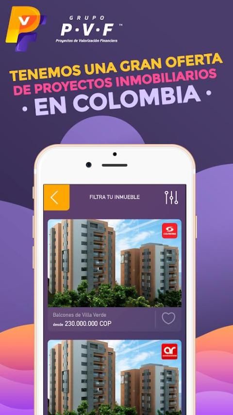एप्लिकेशन PVF के साथ आप बाजार पर सभी बेहतरीन अचल संपत्ति परियोजनाओं देखेंगे और अपने मासिक भुगतान की गणना कर सकते हैं, संपत्ति आप खरीद सकते हैं और भेजने के लिए अपने डेटा का अध्ययन करने के क्रेडिट अपने घर में क्रेडिट के लिए स्वीकृत हो जाते चाहते अलग। यह इतना आसान है!