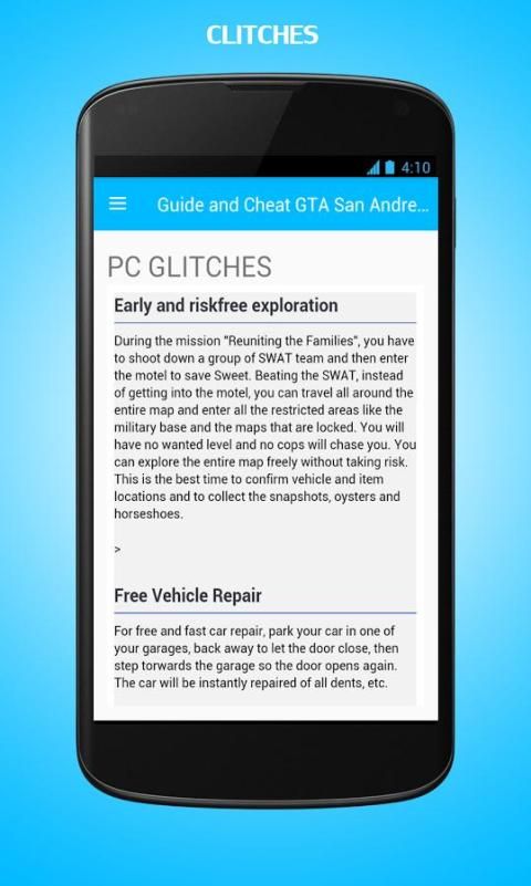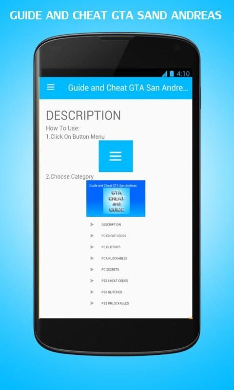 There's no denying the fact that 20,000+ users downloaded Guide and Cheat GTA San Andreas latest version on 9Apps for free every week! This app is intended for an adult audience. This hot app was released on 2017-11-13. It is one of the popular Android apps in 2015.