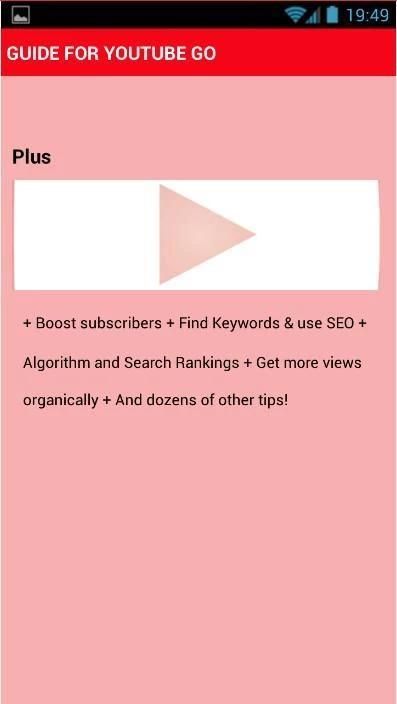 There are hundreds of new apps released every week, 20,000+ users downloaded GUIDE FOR YOUTUBE GO latest version on 9Apps for free every week! You'll found many people are using it. This hot app was released on 2017-04-11. If you still need more information collecting extra factors, read below.