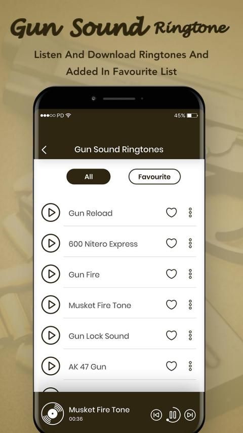 Gun Sound Ringtones app is the great collection of popular Gun Sound and music as unique Gun Sound Ringtones which you can use as ringtone, notification, alarm, or assign to a contact and much more.