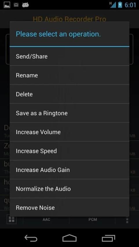 6. Click on the item in the list to play the file and long click to perform operations.