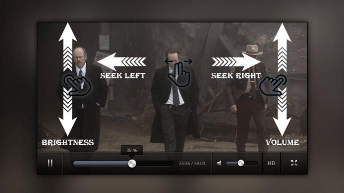 वॉल्यूम, स्क्रीन चमक और प्रगति को नियंत्रित करने के लिए वीडियो स्क्रीन स्लाइडिंग।