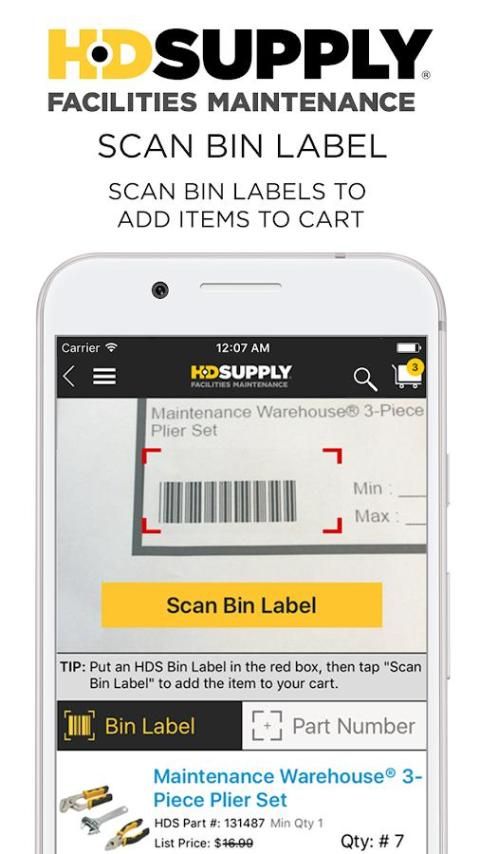 अपने दुकान में स्कैन HD आपूर्ति बिन लेबल जल्दी सूची फिर से इकट्ठा करना।