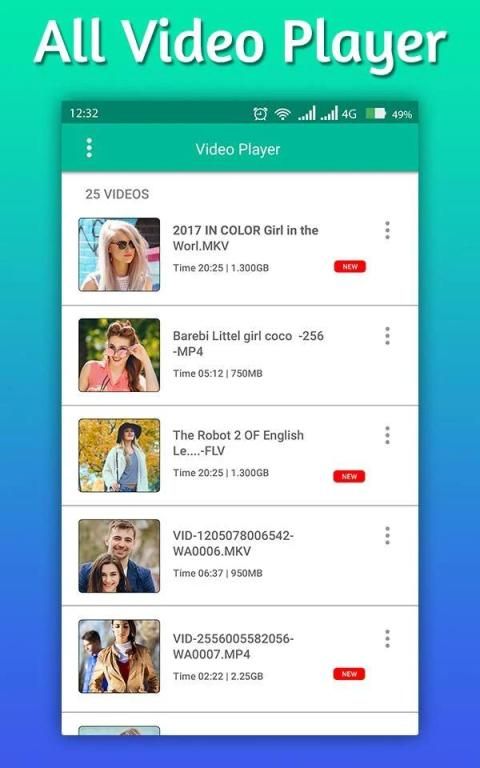 HD वीडियो प्लेयर एप्लिकेशन स्वचालित रूप से मोबाइल स्टोरेज की सभी वीडियो फ़ाइलों का पता लगाता है और फ़ोल्डर को बुद्धिमानी से देखता है।