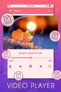 एंड्रॉइड के लिए वीडियो प्लेयर सुरुचिपूर्ण डिजाइन के साथ उच्च गुणवत्ता वाले मीडिया प्लेयर है। वीडियो प्लेयर एमकेवी, एमपी 4, एमपी 3, एवीआई, एमओवी, ओग, डब्ल्यूएवी, एफएलएसी, टीएस, एम 2 टीएस, डब्ल्यूवी और एएसी सहित सभी प्रकार के वीडियो और ऑडियो फाइलों को चलाता है। शक्तिशाली और अच्छी तरह से डिज़ाइन किए गए तुल्यकारक के साथ बास और ट्रेबल समेत ऑडियो प्रयोग को समायोजित करें