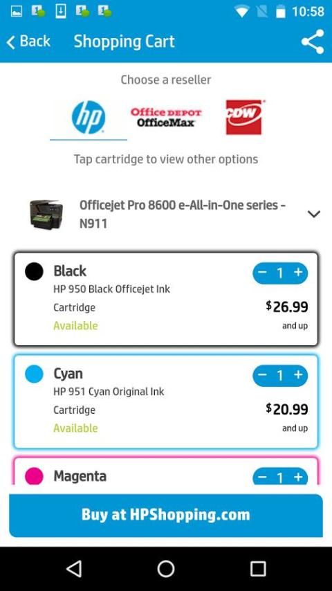 • अपने प्रिंटर जोड़ें और तेजी से क्रय अगली बार के लिए अपने कारतूस वरीयताओं को सेट