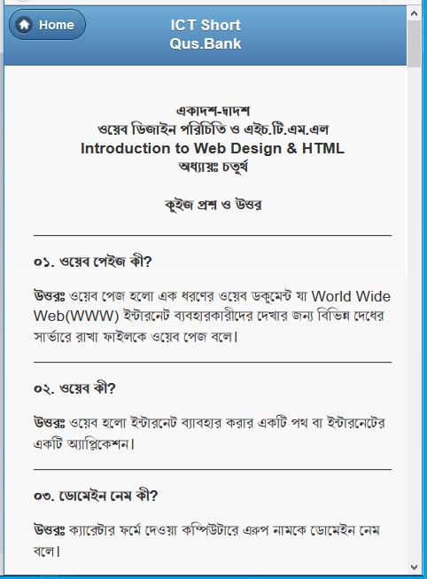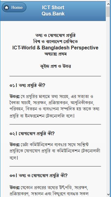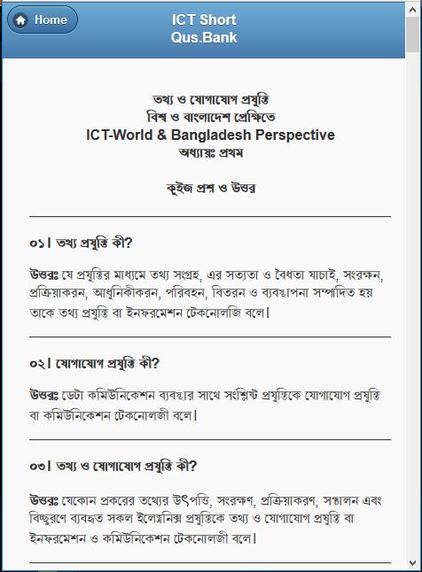 এই অ্যাপটিতে আইসিটি বিষয়ের সকল অধ্যায়ের জ্ঞান ও অনুধাবনমুলক প্রশ্ন ও তার উত্তরগুলো দেওয়া আছে।