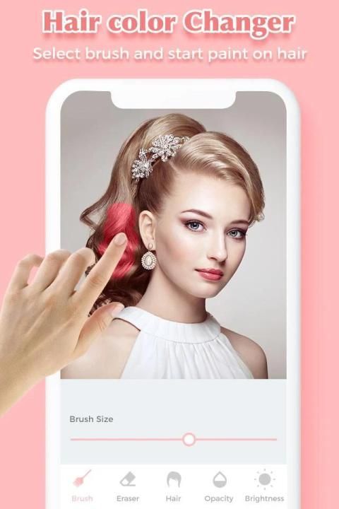 Hair Color Changer set all you have to do is take your own photo, brush your hair, and then choose different hair colors.