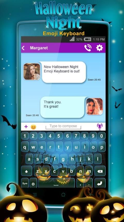 ❦ The adorable picture keyboard for texting will inspire you to text like never before. Our trendy app for boys and girls ❦ Halloween Night Emoji Keyboard ❦ is perfect for everybody who love to change keypad themes and skins frequently. Your smartphone will have the best costumes ever. Experience all the scary and fun Halloween moments right this instant on your tablet with the new and spooky keypad skin and be a real trendsetter among your friends. Decorate your keyboard with “Halloween decorations” and enjoy your favorite holiday with this cool theme. Pick up your beautiful images from the gallery and set one of them as your background for keyboard. Enjoy different keyboard decorations and type on awesome keypad buttons.
