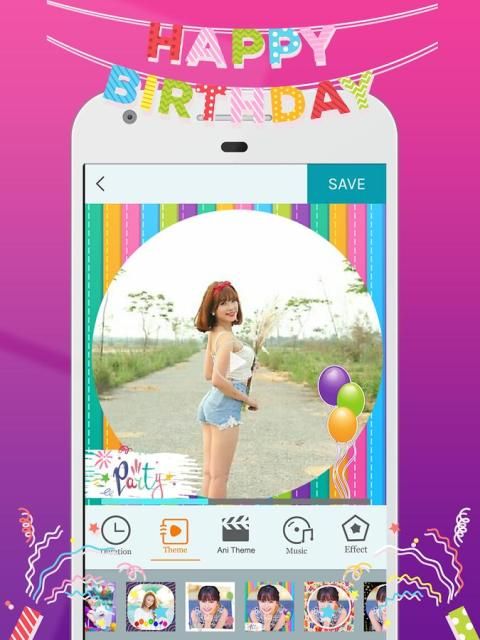 + जो कुछ फोटो और संगीत का चयन जन्मदिन मुबारक फ्रेम वीडियो बनाने के लिए।