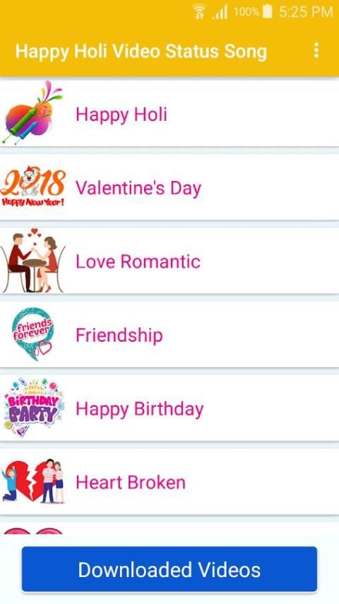 Here provides top Free Android Apps. 20,000+ users downloaded Happy Holi Video Status Song latest version on 9Apps for free every week! It's not only an app it also teaches you how to use it. This hot app was released on 2018-02-22. Enjoy playing with new, amazing features!
