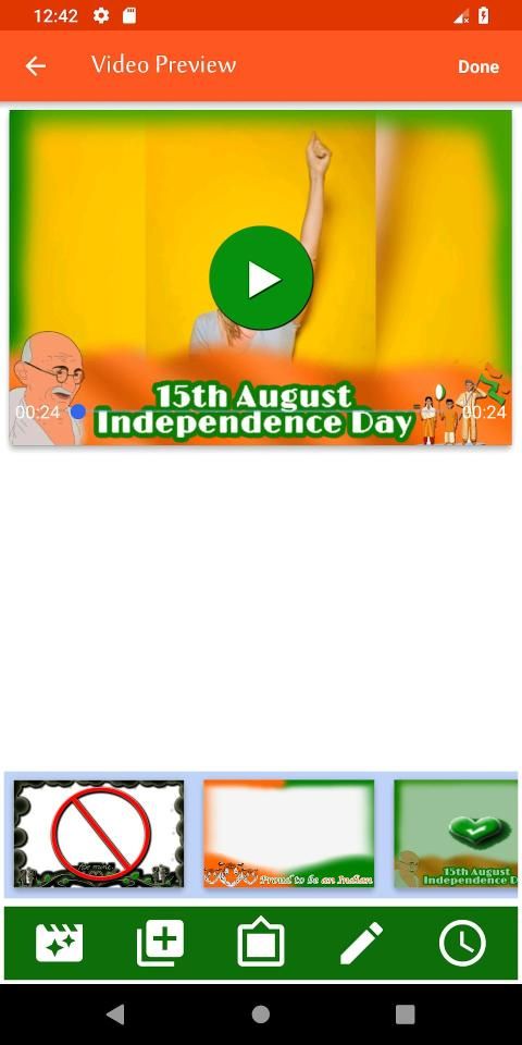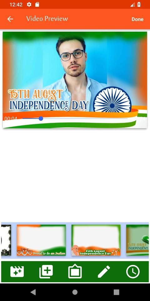 Are you looking for best Independence Day Video Maker or editor app for android for your Mobile Phones etc.Independence Day Wishes Videos to wish our family members, relatives and friends with Independence Day Movie Maker application..Let's make every special moments of your day into a work of art with Independence Day Video Maker editor special effect apps. Our application supports video maker with song & video maker with edited photos.