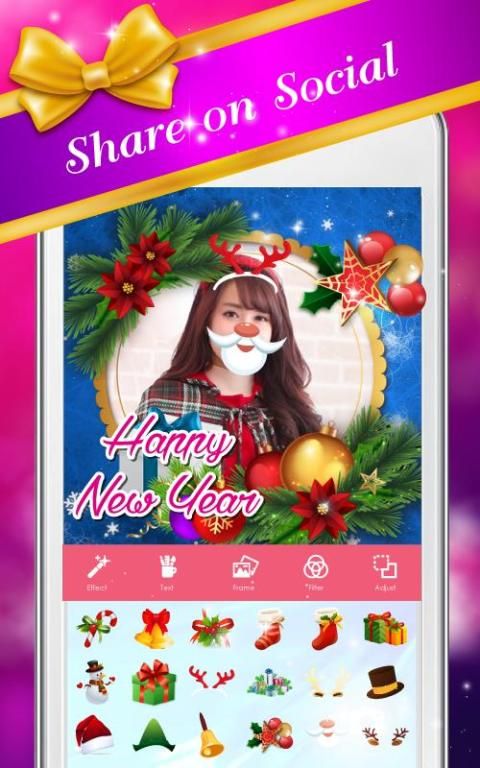 एक सुंदर तस्वीर फ्रेम प्यारा नया साल फ़्रेम। उपयोग करने के लिए एप्पल लाइन कैमरा एक संदेश लिखें। स्टिकर के साथ प्यारा स्टिकर, 200 से अधिक मॉडल के साथ नए साल ग्रीटिंग।