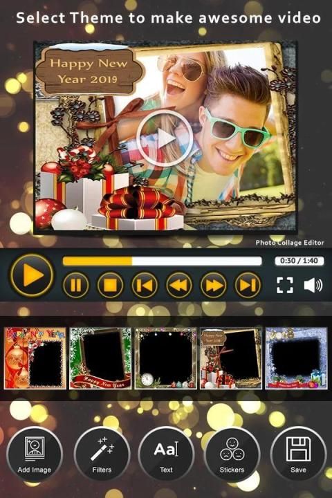 >> अपने वीडियो में प्री लोडेड न्यू इयर फ्रेम फोटो सेट करें और वीडियो के लिए शानदार नया साल 201 9 फोटो बनाएं।