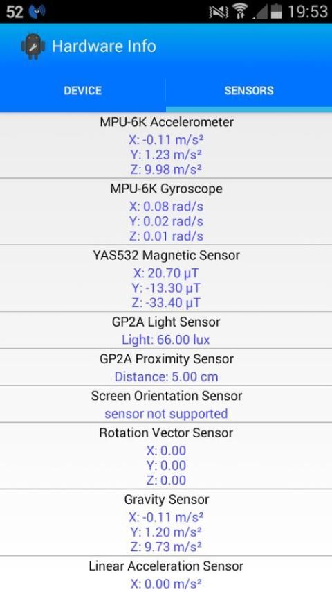 हार्डवेयर के लिए जानकारी आप अपने एंड्रॉयड डिवाइस के बारे में विस्तृत जानकारी देता है।