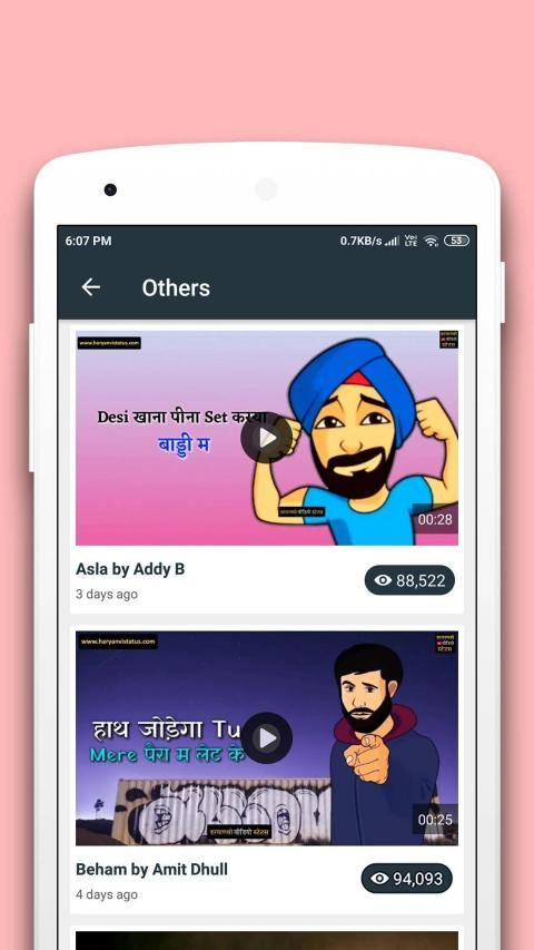 usesr will get haryanvi videos within 10-15 minutes whenever any haryanvi status or mp3 music is out.