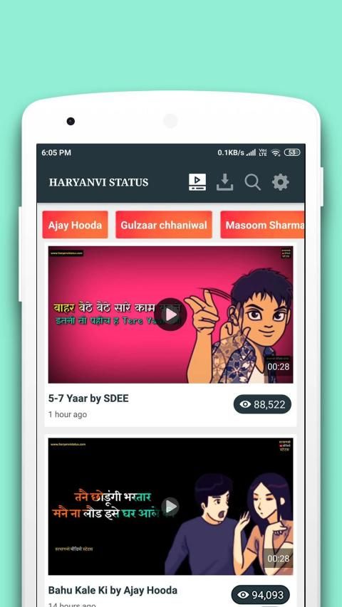 and makes easy for anyone to directly share haryanvi status on social media. you can download and share the video on social apps with one click. one of the most loved app for haryanvi Lyrical Videos, haryanavi Status Videos and haryanvi photos.