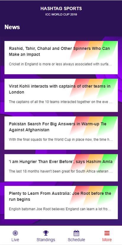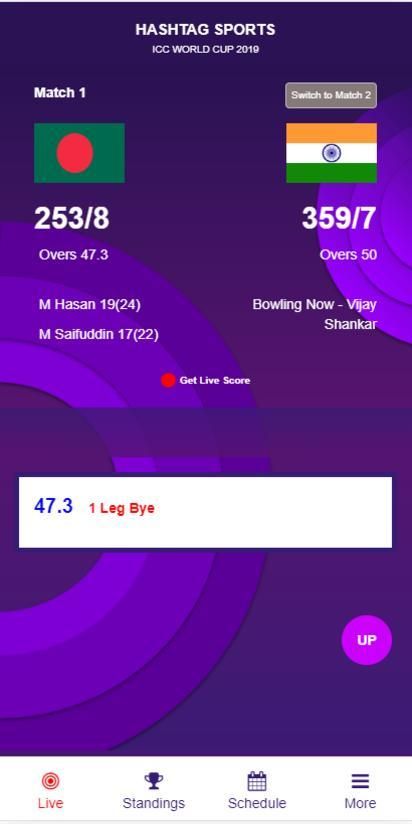Hashtag Sports Product is an app released with only ICC Cricket World Cup update module. In future we are coming up with all the other formats, games