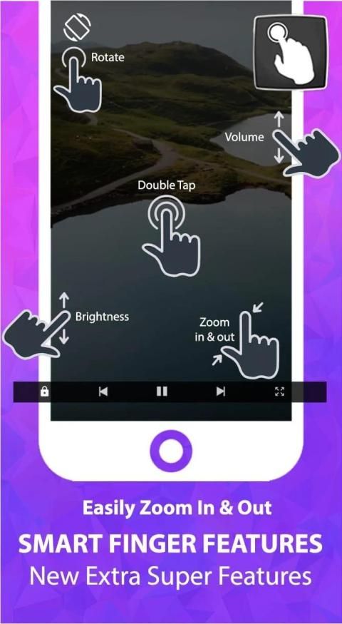 वीडियो की तलाश के लिए इशारा। • वॉल्यूम को नियंत्रित करने के लिए इशारे। • चमक को नियंत्रित करने के लिए इशारे। • एक वीडियो को छोड़ने / चाहने के लिए डबल टैप जेस्चर