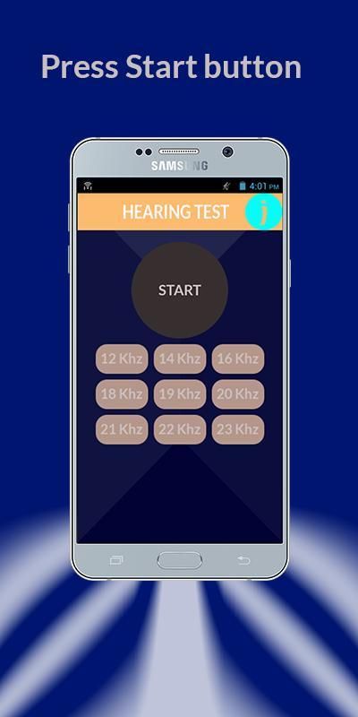 सुनवाई परीक्षण एप्लिकेशन अलग आवृत्ति ध्वनि जिसके माध्यम से हम अपनी सुनवाई का परीक्षण उत्पादन कर सकते हैं।