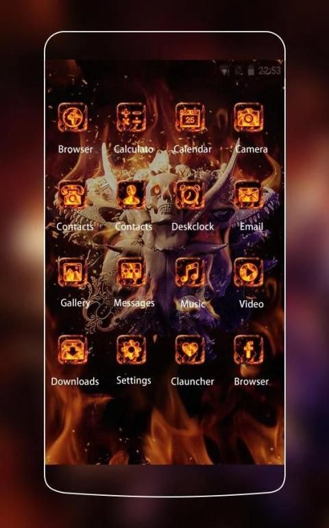 नरक आग खोपड़ी थीम अनुप्रयोग आइकन पैक और नरक आग खोपड़ी वॉलपेपर के साथ एक Android मोबाइल विषय है। नरक आग खोपड़ी थीम सभी Android उपकरणों पर समर्थित है, सैमसंग S7 एज, Huawei मेट 9 आदि