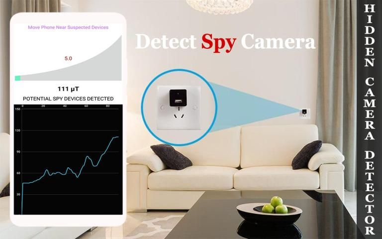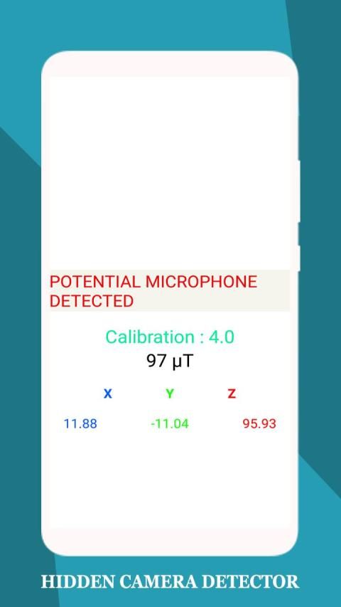 Hidden Camera Detector you can use this app as hidden camera detector Hidden Camera Detected you Can Easily Detect Hidden Camera open Hidden Camera Detected, App and Move it near Suspected device and Hidden Camera will be detected by Hidden camera detector, app. can easily be detect and find by a simple scanning search by detecting magnetic flux and magnetic radiations emitted from electronic devices by your cell phone magnetic activity based sensor.